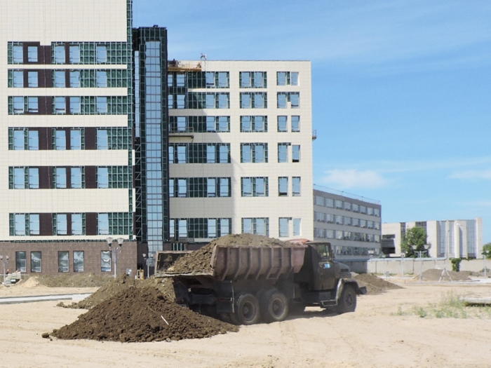 «Сейчас завозят чернозем. Однако, чтобы высадить в него декоративную траву, землю нужно очистить от сорняков, удобрить. Осенью, когда станет немного прохладнее, начнут высаживать деревья, кустарники и розы. Будет сложный централизованный полив» - рассказал координатор строительства Виктор Сухенко.