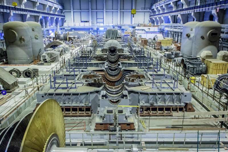 Выполнена центровка вала турбины, ведется монтаж более пяти тысяч тонн трубопроводов.