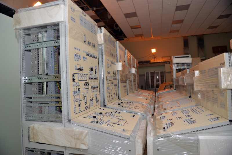 Тренажер в точности воспроизводит пульт, установленный на реальном энергоблоке. Приборы, ключи управления, расположение индикаторов, - всё, включая цвет панелей и стен.