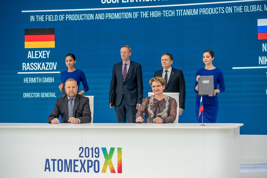 По словам генерального директора Hermith GmbH Алексея Рассказова, новое соглашение открывает перспективы создания в России аэрокосмического и аддитивного кластера, ориентированного на рынки западной Европы, США и Канады. «В сотрудничестве с АО «ТВЭЛ» нам удалось в предельно сжатые сроки организовать поставки полуфабрикатов из титановых сплавов на западноевропейский рынок. В настоящее время предусматривается переход на более глубокую переработку материала вплоть до поставок готовой продукции производителям авиационной промышленности», – подчеркнул Алексей Рассказов.