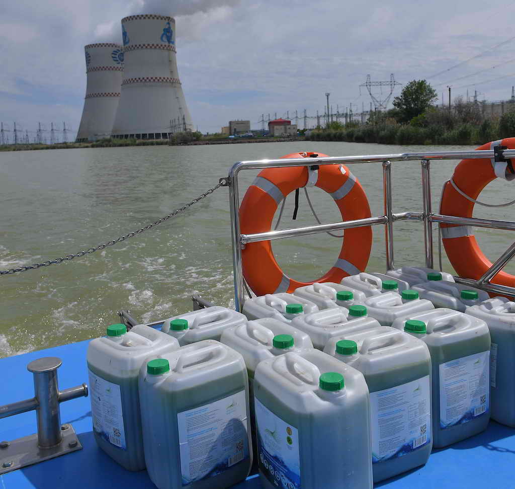 Накануне 600 литров суспензии штамма хлореллы также запустили в водоём-охладитель Ростовской АЭС.