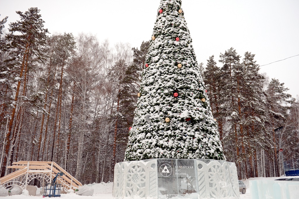 Кроме этого, Белоярская АЭС построила неподалеку новогодний городок по мотивам сказки Льюиса Кэрролла «Алиса в Зазеркалье». Он состоит из 12 ледовых фигур, горок и аттракционов, посреди которых установлена 18-метровая искусственная ёлка.