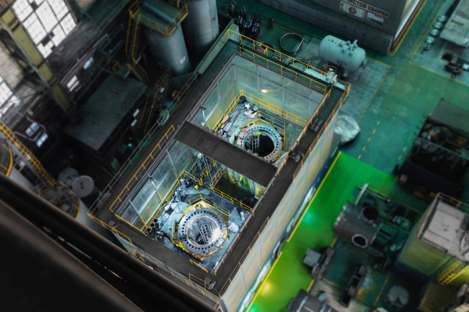 Гидравлические испытания – обязательный вид контроля, который проводится с целью проверки прочности и плотности оборудования, работающего под давлением. Гидроиспытания корпуса реактора ледокола проходили путем заполнения внутреннего объема конденсатом и постепенного подъема давления до 270 атмосфер. После снижения давления до 216 атмосфер специалисты обследовали корпус на отсутствие деформаций и течей. Результаты гидроиспытаний подтвердили прочность и надежность конструкции. В настоящее время идет подготовка к контрольной сборке корпуса первого ПГБ РУ «РИТМ-200» с внутрикорпусными устройствами и крышкой.