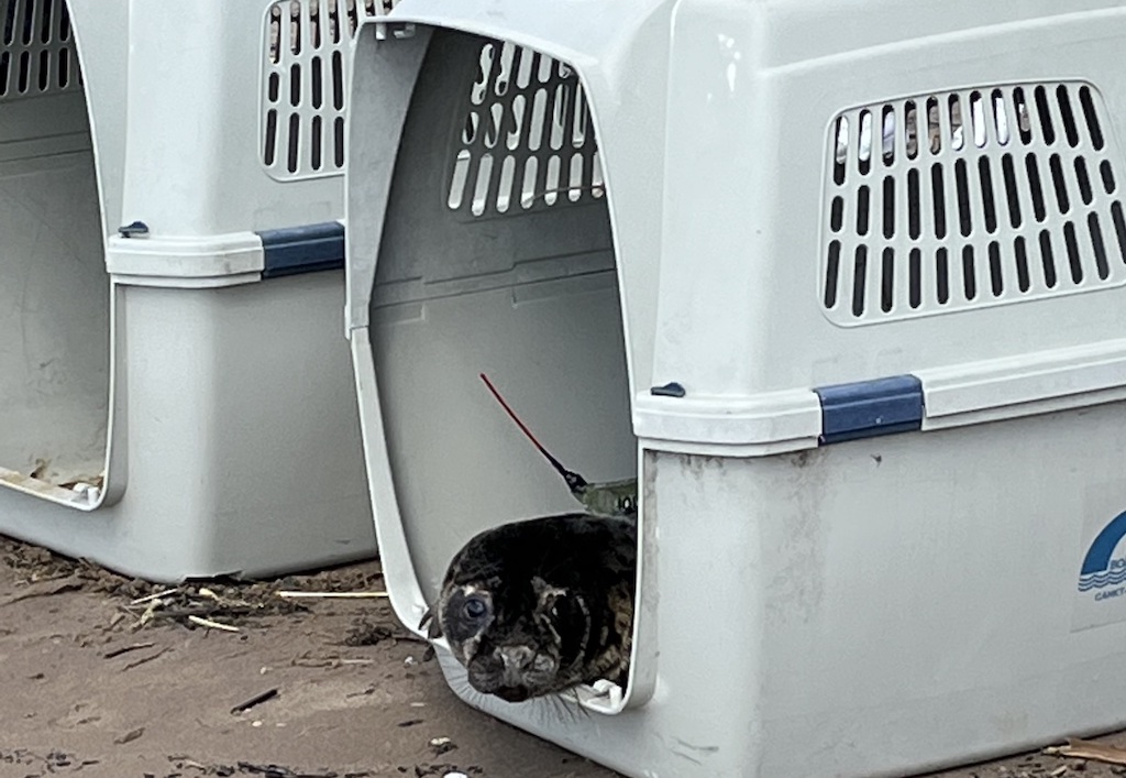 По традиции работники ЛАЭС и волонтеры выбрали имена подопечным, теперь в Балтийском море будут жить Уран, Казаков и Шепелёв. К Урану специалисты Фонда прикрепили передатчик, разработанный специально для морских млекопитающих. Он залит эпоксидный смолой, чтобы работать под водой.