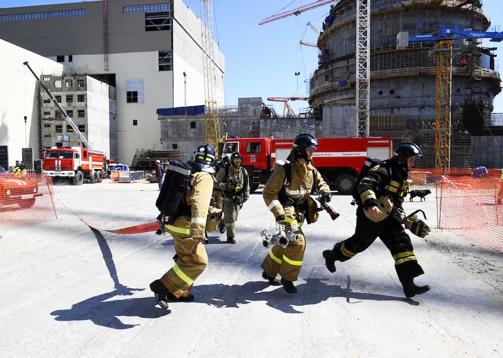 На стройплощадке Курской АЭС-2 отработали навыки пожаротушения
