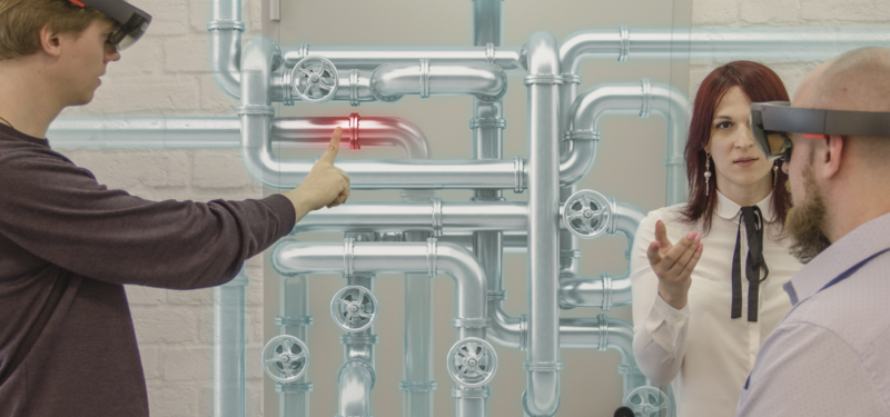 Операторы электростанции с помощью голографической инструкции в очках смешанной реальности Microsoft HoloLens будут проводить сессию тренировок по переключениям на высоковольтных линиях. Голографическая инструкция с помощью визуальных и аудио подсказок обеспечивает корректную работу оператора.