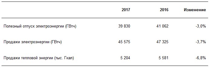 Продажи тепловой энергии сократились по причине более высокой средней температуры в зимний период 2017 года, а также снижения объемов тепловой энергии, закупаемой у Среднеуральской ГРЭС.