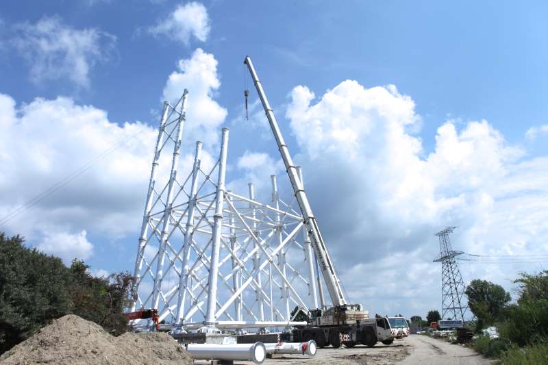 Установку производят с помощью крана грузоподъемностью 200 тонн.