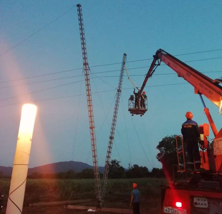 В субботу, 18 августа, энергетики готовили рабочее место для установки временной опоры, производили работы по чистке просеки. Помощь по отсыпке грунта подъездной дороги для проезда тяжелой техники энергетиков к месту повреждения оказали специалисты Примавтодора. Всего было отсыпано 100 кубометров грунта. Также свою технику для этих работ предоставил ИП Бекжанов И.О. Вчера, 19 августа, энергетики полностью завершили работы по монтажу временной опоры, ЛЭП 110 кВ была включена в работу. В работах было максимально задействовано 35 человек и 6 единиц техники. Для оперативного выполнения аварийно-восстановительных работ в Партизанский район были привлечены специалисты южного, центрального и западного подразделений филиала.