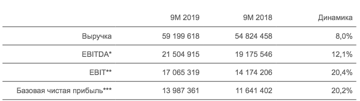 * Показатель EBITDA определяется как прибыль до налогообложения без учета финансовых