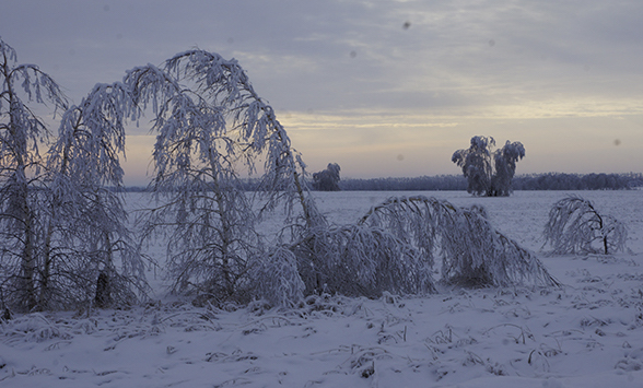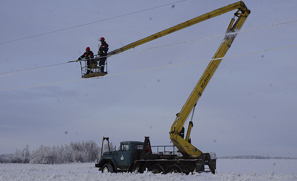 Погодные условия, которые сложились на территории Хабарского и Суетского районов, спровоцировали налипание изморози на все поверхности, в том числе и на провода ЛЭП. Для того, чтобы избежать аварийных ситуаций в электросетевом комплексе, проводилась масштабная работа по очистке линий.