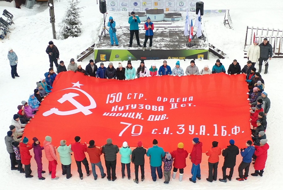 Торжественное открытие мероприятия, участниками которого стали представители девяти команд и множество болельщиков, началось с флешмоба, посвященного юбилейной дате. В знак памяти о подвиге своих дедов и прадедов энергетики растянули над лыжней огромную копию Знамени Победы – штурмового флага 150-й ордена Кутузова II степени Идрицкой стрелковой дивизии.