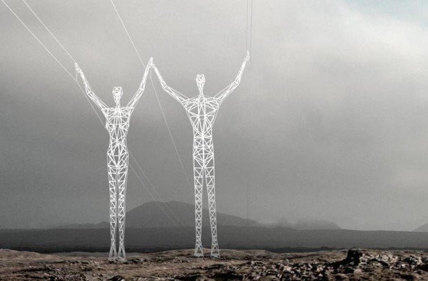 В 2008 году в Исландии объявили конкурс на лучший проект опор для линий электропередач. Так появилась концепция «Земля гигантов», которую разработало американское архитектурное бюро Choi+Shine Architects. В их проекте опоры высотой 30 метров состоят из модулей. Собранные воедино, они представляют собой гигантские человеческие фигуры, которые держат в руках провода. Положение рук и ног у каждой фигуры разное, что создает иллюзию движения. К примеру, установленная на возвышенности опора ЛЭП может «взбираться в гору». По мнению авторов проекта, так опоры гармоничнее вписываются в окружающее пространство. Несмотря на очевидные преимущества, к сожалению, проект так и не был реализован.