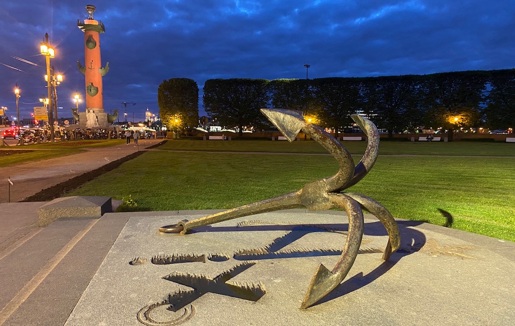 Памятный знак «Якорь петровской эпохи» при свете прожекторов органично дополняет сложившийся столетиями архитектурный ансамбль центрального городского пространства – Биржевой площади - добавляет выразительности. Достопримечательность представляет собой подлинный якорь корабля Российского флота первой трети XVIII века, подчеркивает связь здания Биржи с торговлей и водной стихией.