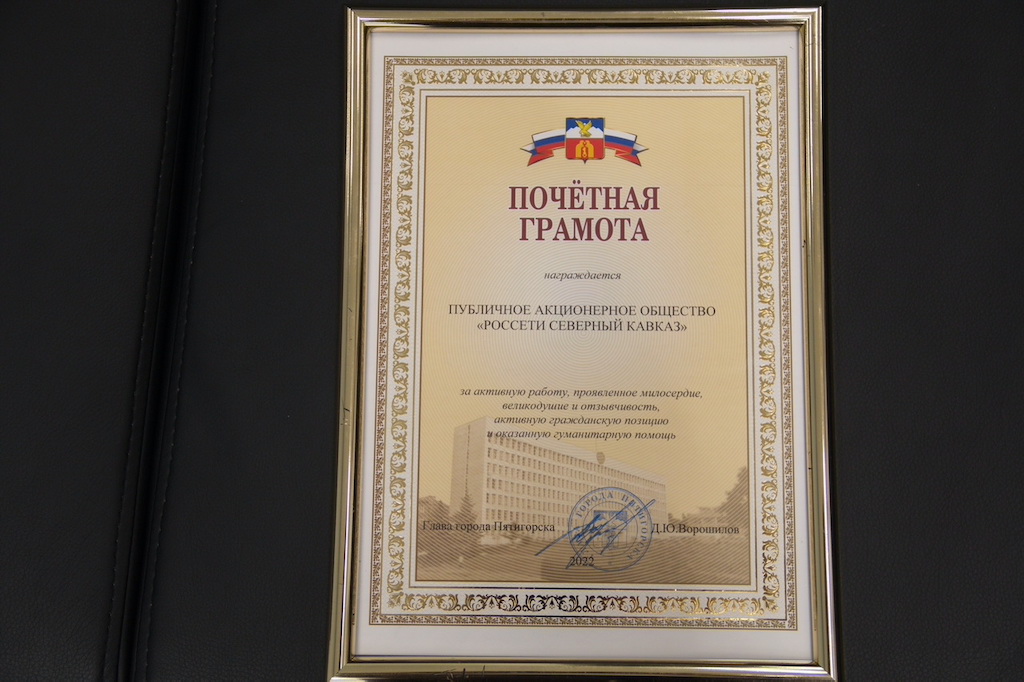 Глава центра Северо-Кавказского федерального округа наградил энергетиков крупнейшей электросетевой компании макрорегиона «за активную работу, проявленное милосердие, великодушие и отзывчивость, активную гражданскую позицию и оказанную гуманитарную помощь».