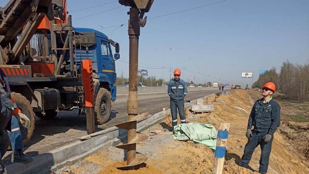 «Стройтрансгаз» монтирует линии наружного освещения на строящемся съезде в Подмосковье