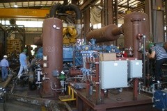 В ходе визита были проведены заводские испытания оборудования для газокомпрессорной станции (ГКС), которая является частью системы комплексного использования попутного нефтяного газа. На газокомпрессорной станции будет использовано три компрессорных агрегата (два рабочих и один в резерве) на базе поршневых компрессоров Ariel, приводимых от газопоршневых двигателей Caterpillar мощностью 3,6 МВт каждый, с номинальной частотой вращения 1000 об./мин. По словам Дмитрия Козлова, все запланированные испытания оборудования в заводских условиях прошли успешно. Основное оборудование ГКС, поставляемое в рамках контрактов подрядчиками – ООО «МРК-Инжиниринг» и «Экстерран Холдинг Компании НЛ Б.В.», скомплектовано и будет отгружено в конце сентября. Комплектующие укрытий газоперекачивающих агрегатов – стеновые панели, балки здания станции, системы его жизнеобеспечения, уже поступают на склад в Томске.