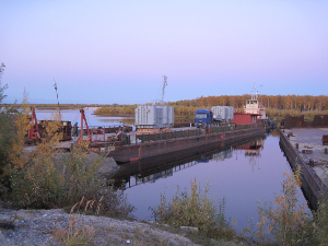 За это время баржа проделала путь длиною в 650 км по воде от п. Коротчаево вниз по реке Пур, вошла в Тазовскую Губу, откуда поднялась вверх по реке Таз до п. Сидоровский, где и ведется строительство подстанции. Доставка оборудования на объект таким способом осуществлялась в МЭС Западной Сибири впервые.