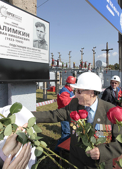 Отныне энергообъект будет носить имя известного туляка, Героя Советского Союза, летчика-штурмовика, младшего лейтенанта Ивана Николаевича Алимкина. До начала Великой Отечественной войны Иван Алимкин работал учителем начальной школы в деревне Тризново Тульской области. После окончания лётного училища с марта 1943 года воевал на различных фронтах. Принимал участие в боях на Курской дуге и уже через восемь месяцев совершил 83 боевых вылета. Особенно отличился отважный летчик в боях за Днепр, за что ему было присвоено звание Героя Советского Союза. 18 января 1945 года смешанный советско-югославский экипаж Ил-2 Ивана Алимкина погиб, совершив огненный таран при выполнении боевого задания в небе над Сербией. Отважные герои были похоронены в местном селе Бачки-Брестовац. Переименование подстанции филиала «Тулэнерго» в честь героя войны стало очередным этапом реализации масштабной историко-патриотической акции ОАО «Холдинг МРСК» на Тульской земле. Напомним, что 4 мая 2011 года, в селе Крапивна, на родине Героев Советского Союза, летчиков Дмитрия Зайцева (потомственный электромонтёр) и Ивана Алимкина был дан старт Международной эстафете памяти и благодарности «Родина Подвига – Родине Героя». Мероприятие посвящено 70-летию Великой Победы и рассчитано на пять лет (до 2015 года). В своем выступлении на торжественной церемонии переименования подстанции 35/6 кВ №192 начальник отдела по связям с общественностью Департамента по информационной политике и коммуникациям ОАО «Холдинг МРСК» Андрей Почтарев отметил: «Цель Международной эстафеты памяти и благодарности «Родина Подвига – Родине Героя» - реализовать на деле призыв «Никто не забыт – ничто не забыто», почтить память отважных героев, в том числе электроэнергетиков, удостоенных высших наград Отечества – Золотой звезды Героя Советского Союза и ордена Славы. Акция способствует установлению долгосрочного и взаимовыгодного сотрудничества между населенными пунктами стран Содружества Независимых Государств и дальнего зарубежья, при обороне и освобождении которых от фашистских оккупантов были совершены героические подвиги, и населенными пунктами, где родились и воспитывались Герои, служит делу патриотического воспитания молодежи, всемерной поддержке ветеранской общественности». Выступившие на митинге заместитель генерального директора – руководитель аппарата ОАО «МРСК Центра и Приволжья» Ирина Яшанина, председатель Координационного Совета ветеранов распределительного электросетевого комплекса, заслуженный энергетик СНГ, участник выполнения интернационального долга в Афганистане Юрий Жуков, фронтовик Виктор Митин, представители Тульского регионального отделения ДОСААФ, администрации Щекинского района, ученики Крапивненской школы и многие другие единодушно выразили слова благодарности руководству «Тулэнерго», всем участникам Международной эстафеты памяти и благодарности «Родина Подвига – Родине Героя», всем тем, кто помогает сохранить и преумножить славу героев Великой Отечественной войны. Кульминационными моментами памятного мероприятия стали открытие мемориальной доски, посвященной Герою Советского Союза Ивану Алимкину и автопробег по территории района и города с участием работников ДОСААФ Тульской области. Подстанция «Алимкин» стала десятым по счёту имен