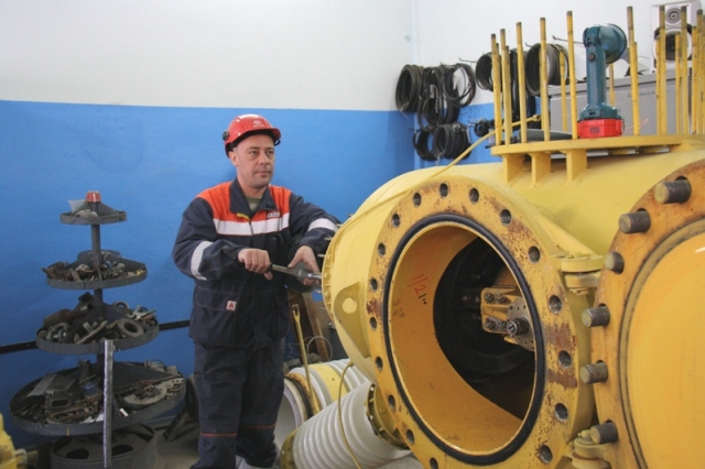 На фото: электрослесарь Павел Потылицин ремонтирует камеру воздушного выключателя 220 кВ