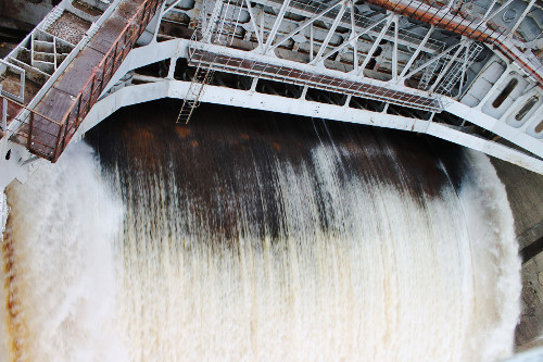 В этом году 30 мая сегментный затвор был открыт в 10.00. Суммарный расход воды через гидроузел составляет 2000 м³/с.