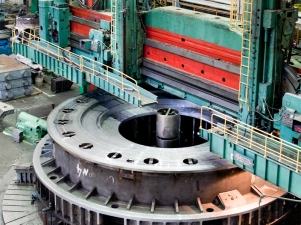 Поскольку это одна из самых габаритных деталей турбины, (ее масса – 352 т, диаметр – 11 м), обработка и кантовка крышки представляли особую сложность, поэтому ее разделили на четыре части.