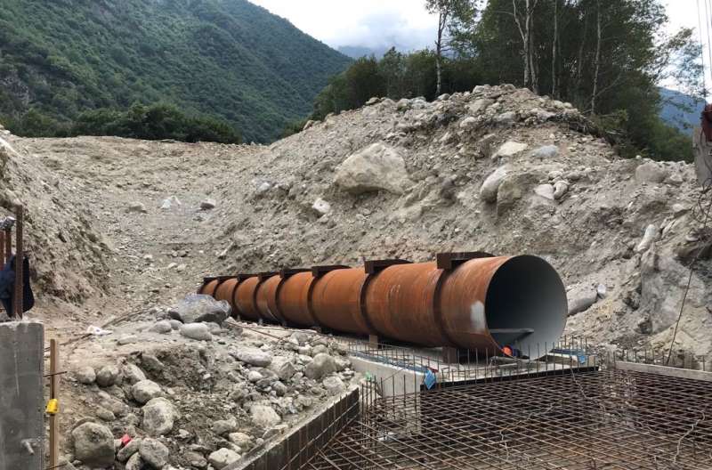 Одновременно продолжается активная работа по возведению других сооружений гидроэлектростанции – деривационного канала-лотка и тоннеля №2, здания ГЭС. В отстойник – гидротехническое сооружение, предназначенное для очищения воды от наносов, которые несет горная река, уложено уже больше 90% необходимого объема бетона. К концу сентября планируется провести испытания отстойника наполнением до отметок нормального подпорного уровня.