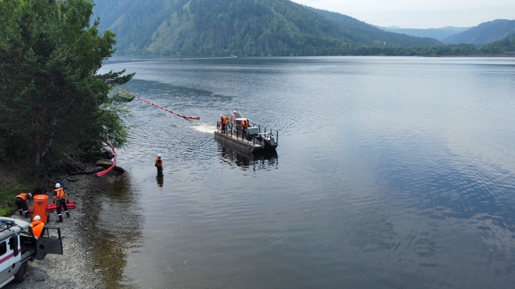 На втором этапе учений привлеченное аварийно-спасательное формирование демонстрировало работу по ликвидации розлива нефтепродукта в реку Енисей. На Майнском водохранилище с помощью плавсредств были развернуты боны, препятствующие распространению условного нефтяного пятна. Специальными техническими средствами условные нефтепродукты были собраны с поверхности воды во временное хранилище для дальнейшей утилизации.