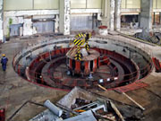 Уровень верхнего бьефа 527,28 м (нормальный подпорный уровень СШГЭС 539 м), уровень нижнего бьефа 323,84 м.