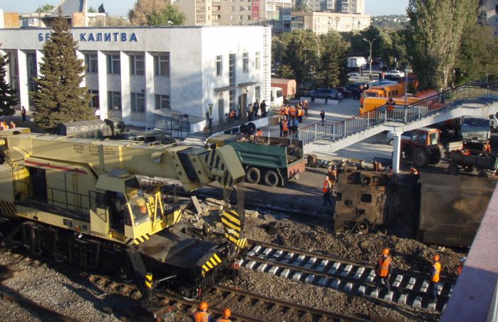 За минувшие сутки аварийно-восстановительными бригадами СКЖД (Филиала ОАО «РЖД») вывезено 22 поврежденных цистерн, всего 1320 тонн металлолома, восстановлено 650 метров ж/д полотна.