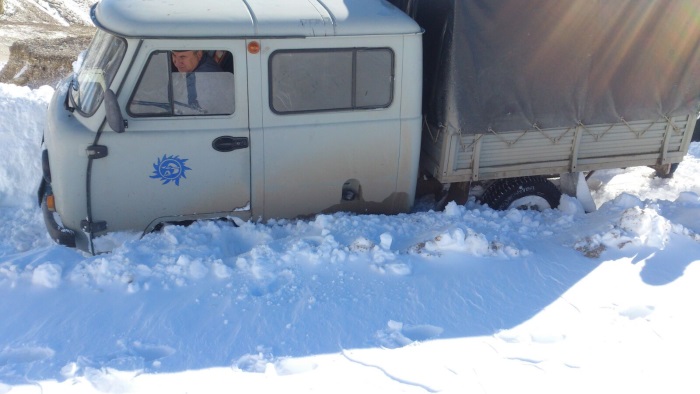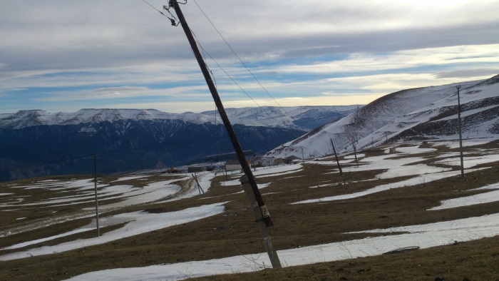 Из-за сильного ветра и снега в Мехельте был поврежден трансформаторный пункт. На место аварии выехали оперативные дежурные и главный инженер Гумбетовских районных электрических сетей. Дорога к месту аварии была не из легких: машина застревала в снегу, энергетикам приходилось буквально вручную прокладывать себе путь.