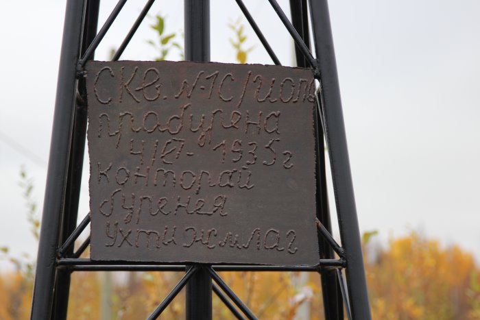 Памятный знак «Первая скважина» представляет собой пилон и мемориальную доску, являющуюся точной копией установленной в 1935 году на скважине. Знак установили недалеко от мемориала участникам Великой Отечественной войны, который в прошлом году также изготовил Сосногорский ГПЗ.