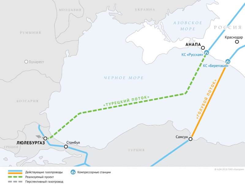 В соответствии с графиком осуществляется реализация проекта «Турецкий поток». В настоящее время ведется укладка второй нитки газопровода в направлении Турции, продолжается строительство приемного терминала в прибрежной зоне вблизи населенного пункта Кыйыкей. Завершено строительство объектов берегового примыкания в России в районе г. Анапы, продолжаются пусконаладочные и благоустроительные работы, которые будут завершены в 2018 году.