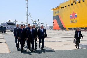 По словам Игоря Сечина, строительство новой верфи и перевооружение существующего завода происходит одновременно с реализацией производственной программы. В соответствии с утвержденным графиком идут работы по строительству многофункциональных судов снабжения усиленного ледового класса. В 2019 году этап строительства первого головного судна на стапеле будет завершен и судно будет спущено на воду для достройки, испытаний и сдачи заказчику.