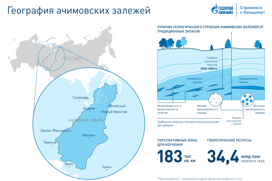 * Геологические запасы нефтяных ачимовских залежей Ямбургского нефтегазоконденсатного месторождения — 1,2 млрд тонн.