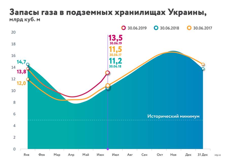 Для обеспечения стабильного прохождения осенне-зимнего сезона 2019/2020 гг. необходимо накопить в ПХГ около 20 млрд куб. м газа, сообщает департамент коммуникаций НАК «Нафтогаз Украины».