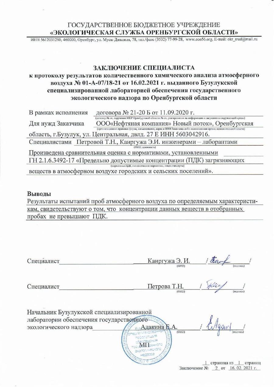 Следующий мониторинг атмосферного воздуха Бузулукской спецлабораторией совместно с экологической службой НКНП запланирован на вторую половину марта 2021 года.