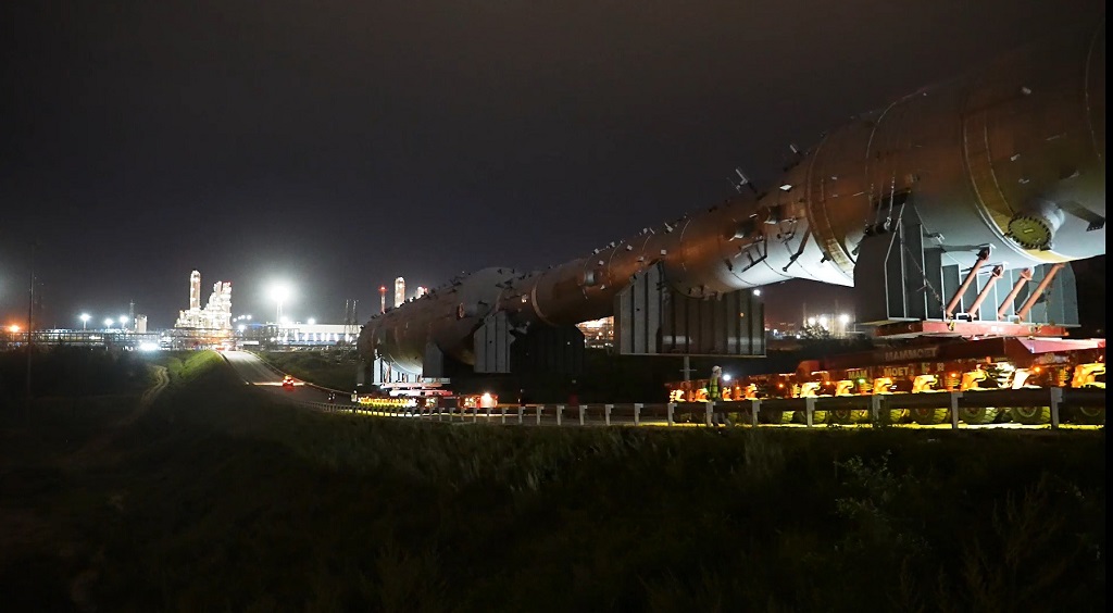 Колонны доставили от причала на реке Зея на строительную площадку Амурского ГПЗ с помощью самоходных модульных транспортеров. Чтобы не мешать движению автомобилей и обеспечить безопасность дорожного движения, транспортировка велась преимущественно в ночное время со скоростью 5 км/час. В операции по установке колонн на пятой технологической линии Амурского ГПЗ были задействованы краны грузоподъемностью 600 и 1600 тонн.