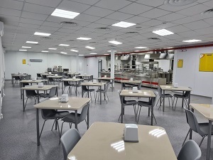 Столовая ВЖК оснащена современным оборудованием для полного цикла приготовления высококалорийного горячего питания, необходимого в северных климатических условиях. Комнаты приема пищи также
