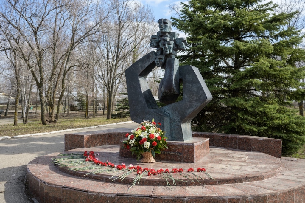 В завершение мероприятия собравшиеся возложили цветы к памятнику «Люди мира, встаньте!», посвященному погибшим малолетним узникам концлагерей.
