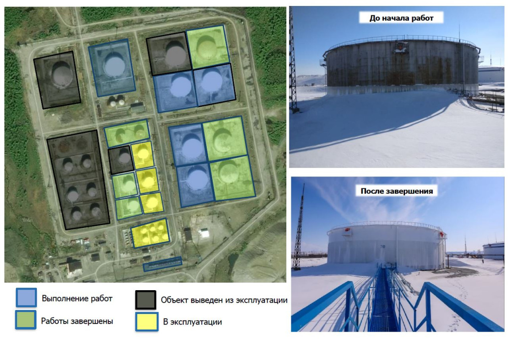 В течение 2020–2021 гг. группа компаний «Норникель» в значительной мере обновила ключевые объекты инфраструктуры резервуарного хозяйства, и на данный момент все они соответствуют действующим федеральным нормам и правилам. Не соответствующие требованиям резервуары были демонтированы. Компания продолжает выполнять оставшиеся предписания: эти действия находятся под постоянным личным контролем руководителей дочерних компаний и руководства «Норникеля».