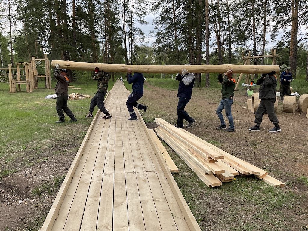 На днях, команда из 11 волонтеров НКНП вместе с лесниками демонтировала крупногабаритные устаревшие сооружения на месте нового экопарка, корчевала пни, распределяла бревна к строящимся рекреационным зонам и детским площадкам; удаляла сухостой, сорные заросли, крапиву и стерню вокруг игровых площадок. Общими усилиями удалось даже перенести живописную корягу на место, которое ей предназначили дизайнеры – планировщики. Для сведения, к новому экологическому маршруту выдающуюся корягу диаметром более 3 метров доставили на специальном прицепе. Принял работу волонтеров лично директор национального парка Андрей Александрович Латыпов, выразил благодарность и команде, и компании.