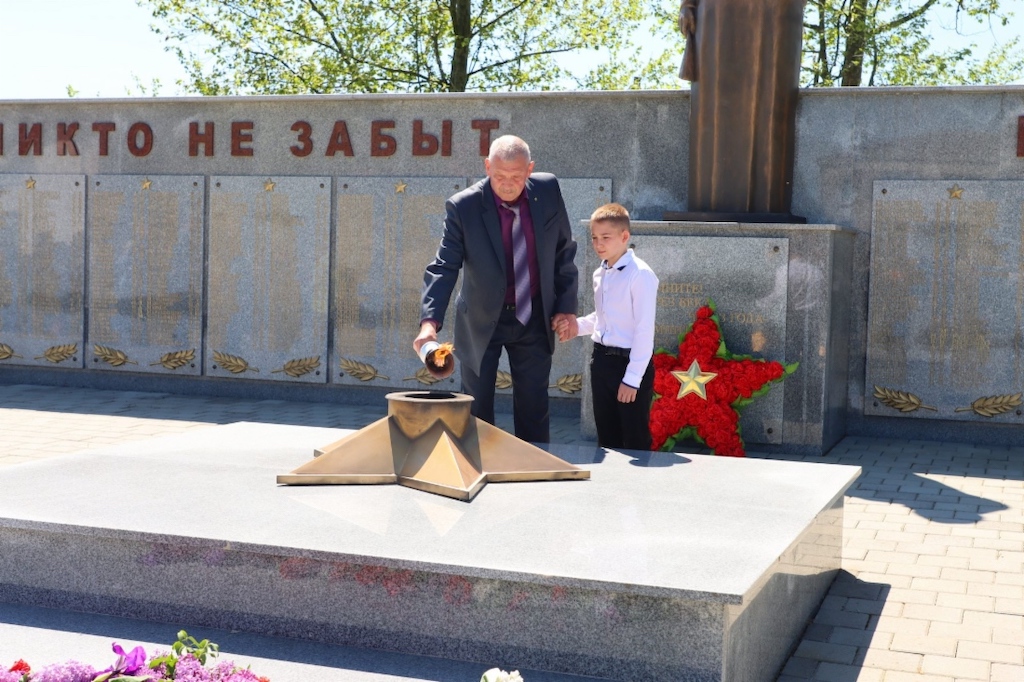 Право зажечь Вечный огонь предоставили почетному гражданину района Эдуарду Щербину и многократному призеру краевых соревнований по рукопашному бою Кириллу Бухтиярову. Лампада с частичкой огня была доставлена с мемориала «Скорбящая Мать» станицы Брюховецкая.