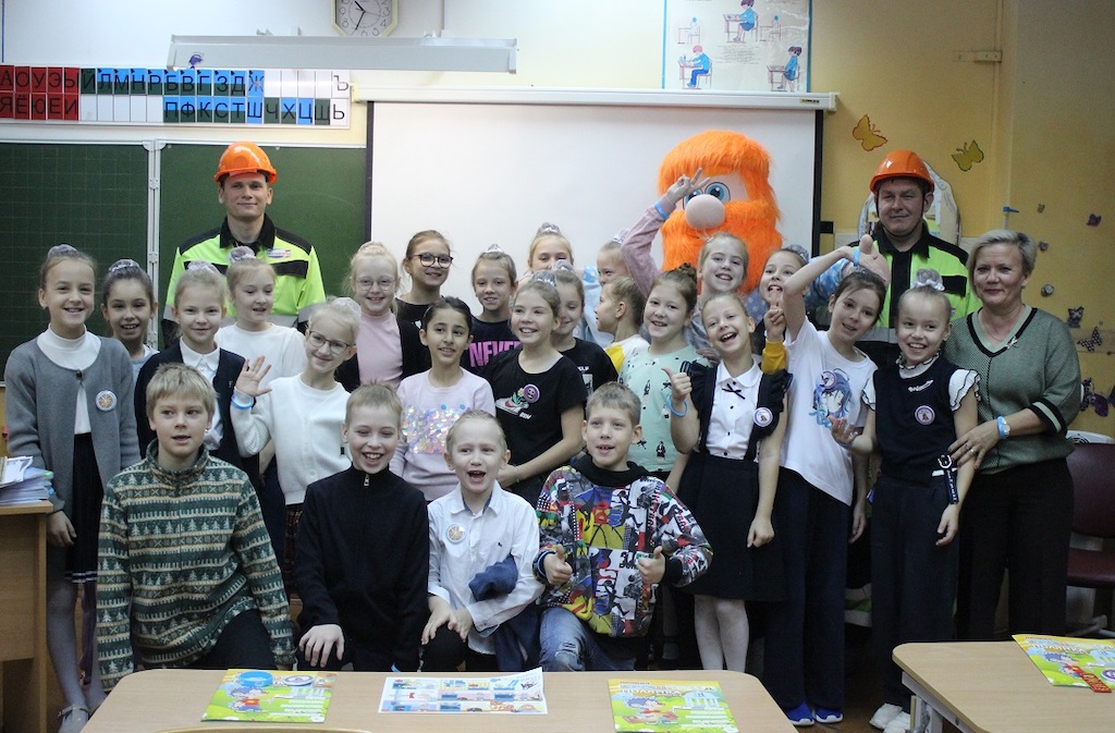 Школьники, а также присутствовавшие на уроке родители, подключались к беседе, задавали вопросы и участвовали в викторине. С огромным удовольствием ученики фотографировались и обнимались с талисманом компании Старичком-Газовичком. За активность на уроке ребят посвятили в газовики и вручили в подарок сувениры от компании.