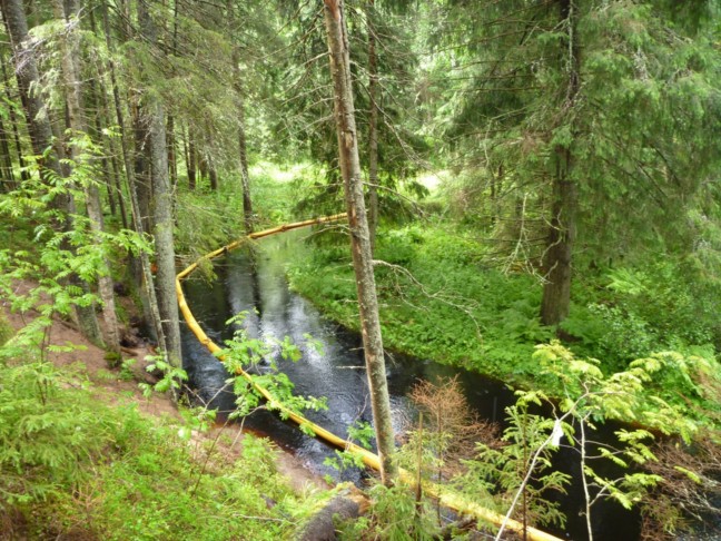 При осмотре отвода на расстоянии 550 метров от трубы специалисты ОАО «Балтранснефтепродукт» обнаружили загрязнение грунта нефтепродуктом. Площадь загрязнения 5м х18м в прибрежной зоне (около 2 метров) от р.Харвази. Попадание нефтепродукта (дизельного топлива) в реку на тот момент отсутствовало.
