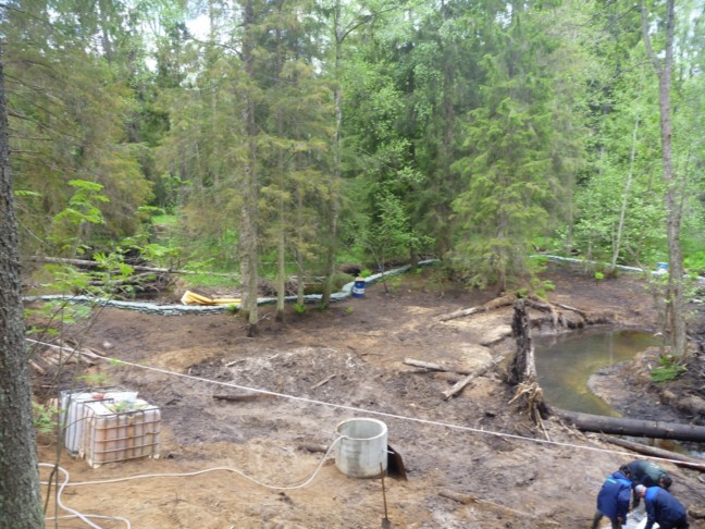 Продолжаются рекультивационные работы после разлива нефтепродукта из отвода несанкционированной врезки в линейную часть магистрального нефтепродуктопровода «Второво – Приморск» в районе р.Харвази (Ленинградская область, Всеволожский район, недалеко от г.Сертолово).