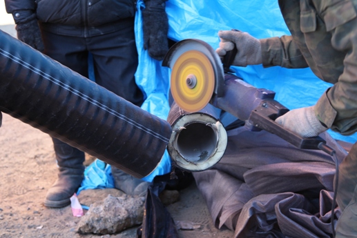 210 метров гофрированной трубы диаметром 141 мм из нержавеющей стали, изолированной вспененным полиуретаном и завернутой в полиэтиленовую оболочку было проложено за несколько часов.
