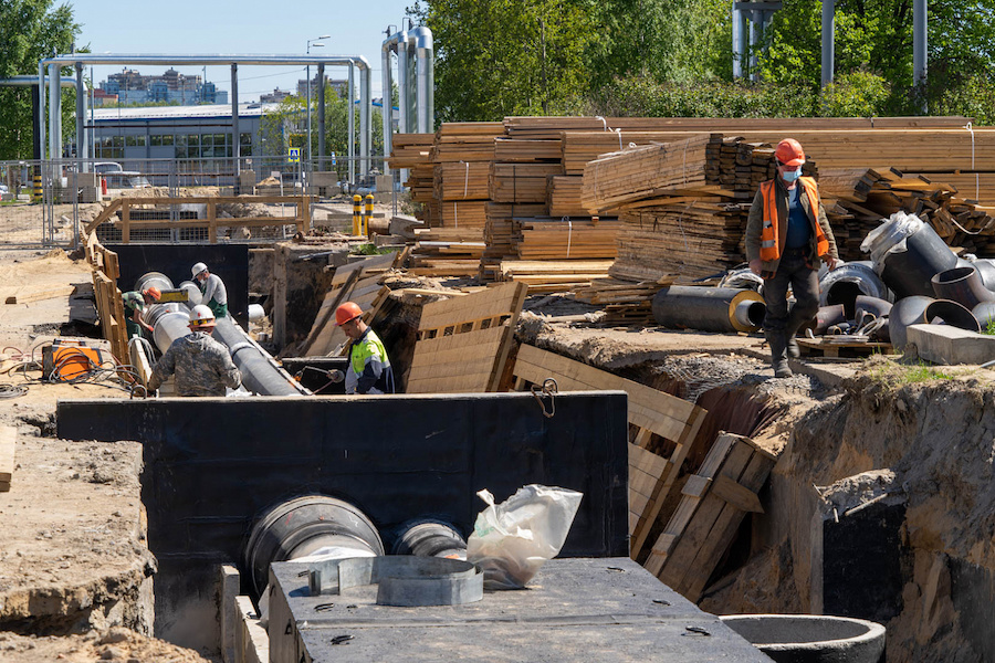 В настоящее время на объекте продолжается откопка траншей, демонтаж изношенных коммуникаций и прокладка новых трубопроводов. Паропровод укладывают в непроходные каналы с современной дренажной системой.