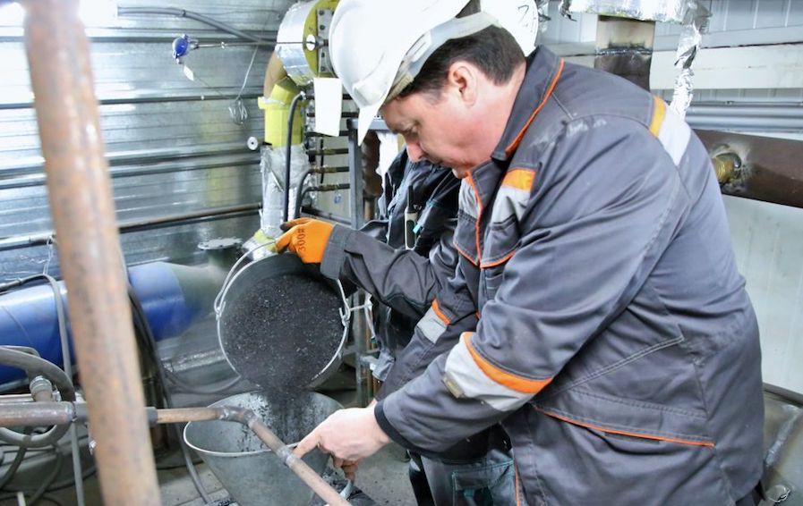 Даулет подходит к установке и производит сброс золы в ведро. Масса серого цвета, с красными прожилками, словно магма из вулкана, стекает в емкость. Магистр, с восхищением, отметил: «Такой золы вы не увидите ни на одной станции».