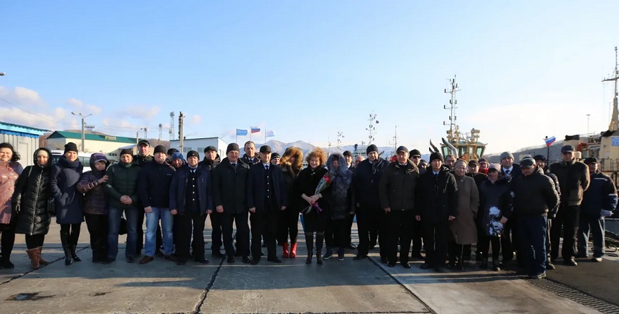 Перед собравшимися выступили начальник Портофлота Виталий Плешаков и капитан буксира Андрей Литвинов: